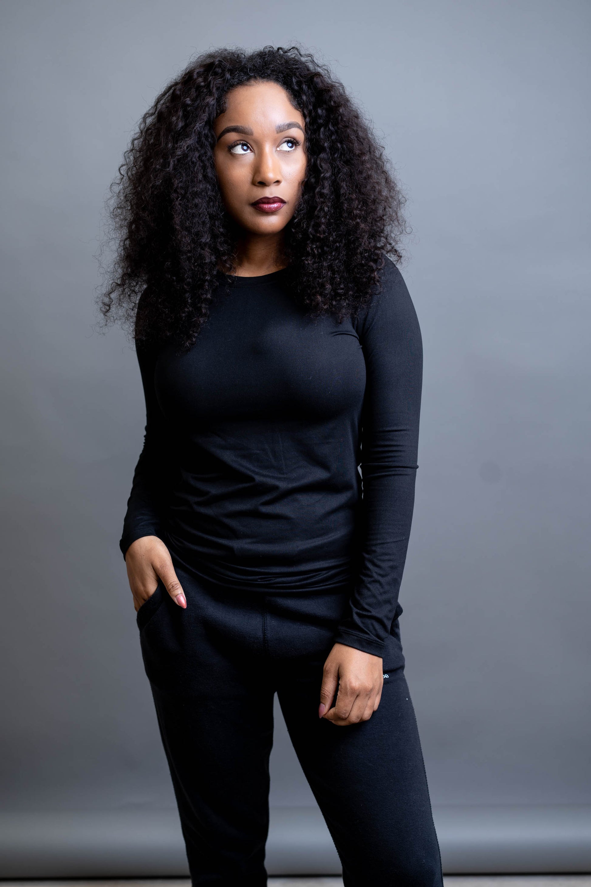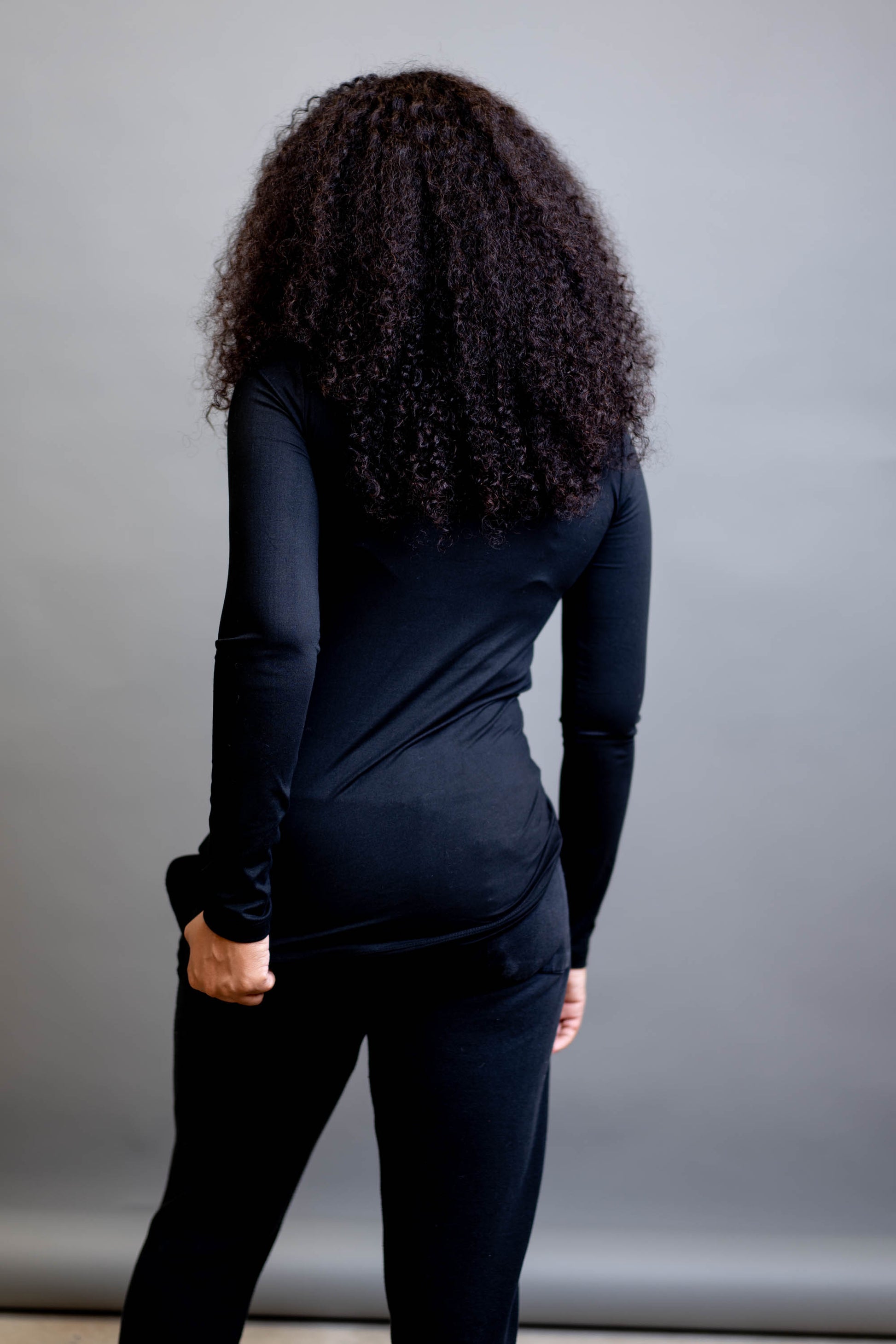 A fitted, round-neck long sleeve that layers cleanly under blazers and stands alone without being sheer.