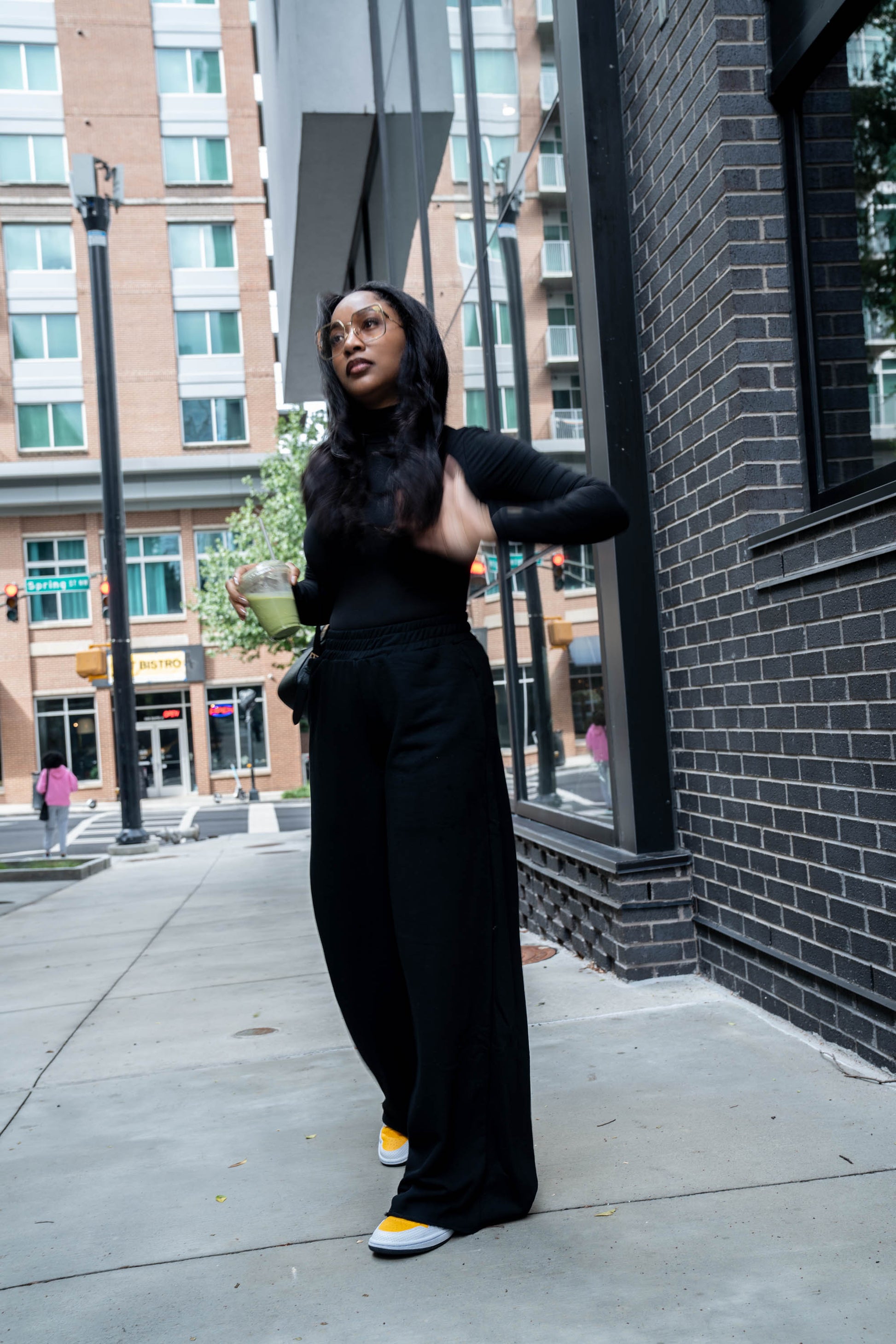 Off-duty with the Cropped Pullover Hoodie or Cropped Zip Up Hoodie; polished with the Essential Button-Up and flats.